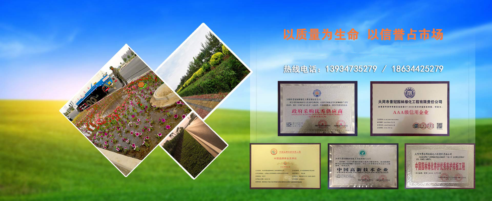 大同市景冠園林綠化工程有限責(zé)任公司是一家根植于設(shè)計(jì)、施工、植保養(yǎng)護(hù)、苗木花卉生產(chǎn)于一體的園林景觀企業(yè)。公司“以質(zhì)量為生命”、“以信譽(yù)求發(fā)展”這是公司一貫的經(jīng)營(yíng)宗旨。并以創(chuàng)新,誠(chéng)信,綠色,共享的發(fā)展理念,創(chuàng)造良好的企業(yè)環(huán)境。堅(jiān)持愛綠,護(hù)綠,保綠的方針為城市增添一份綠色,用綠色擔(dān)當(dāng)生態(tài)建設(shè)使命是我們共同追求的價(jià)值和企業(yè)目標(biāo)。以全新的管理模式,完善的技術(shù),周到的服務(wù),卓越的品質(zhì)為生存根本。幾年來(lái)我們致力于園林景觀植物領(lǐng)域的研究,在城市綜合體景觀,校園園林景觀,道路景觀,生態(tài)農(nóng)業(yè)景觀,美麗鄉(xiāng)村景觀,濕地景觀等多個(gè)領(lǐng)域參與規(guī)劃設(shè)計(jì)施工。不斷加大科技投入力度,加強(qiáng)人才的儲(chǔ)備,網(wǎng)絡(luò)技術(shù)的培訓(xùn),提升自主創(chuàng)新能力,不斷完善企業(yè)文化,用超前的技術(shù)制定出一套完整的園林植保技術(shù)管理方案。我們堅(jiān)持以擔(dān)當(dāng)為使命,用戶至上,服務(wù)至上,秉持初衷,不忘初心,實(shí)實(shí)在在,心無(wú)旁騖做好植保養(yǎng)護(hù)主業(yè),打造屬于自己的企業(yè)品牌,好好服務(wù)客戶,打動(dòng)客戶。